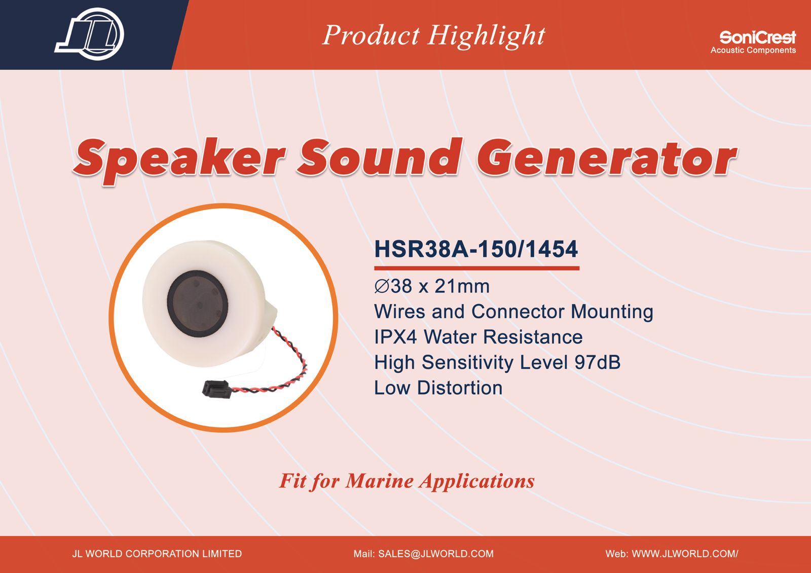 HSR38A-150/1454 is a dynamic receiver specifically designed for marine applications. Beyond the standard version, the HSR38A-150/1454 is integrated with waterproof materials to ensure water resistance, maintaining reliable functionality in marine environments. Furthermore, the HSR38A-150/1454 comes equipped with customizable wires and connectors, making it easier for customers to mount the component directly onto their own product PCB.